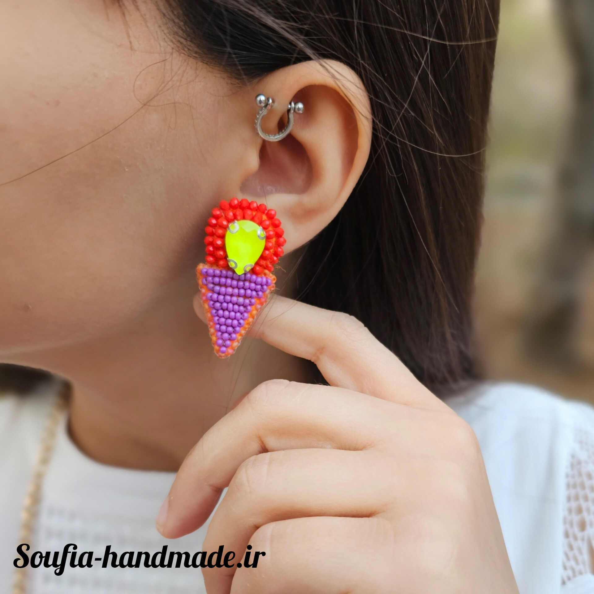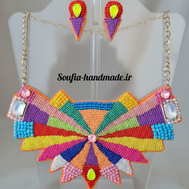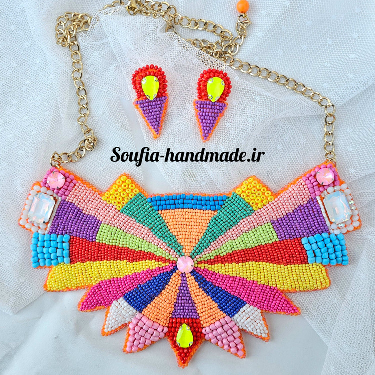 یکی از رنگی ترین و شاد ترین گردنبند و گوشواره ی من😍