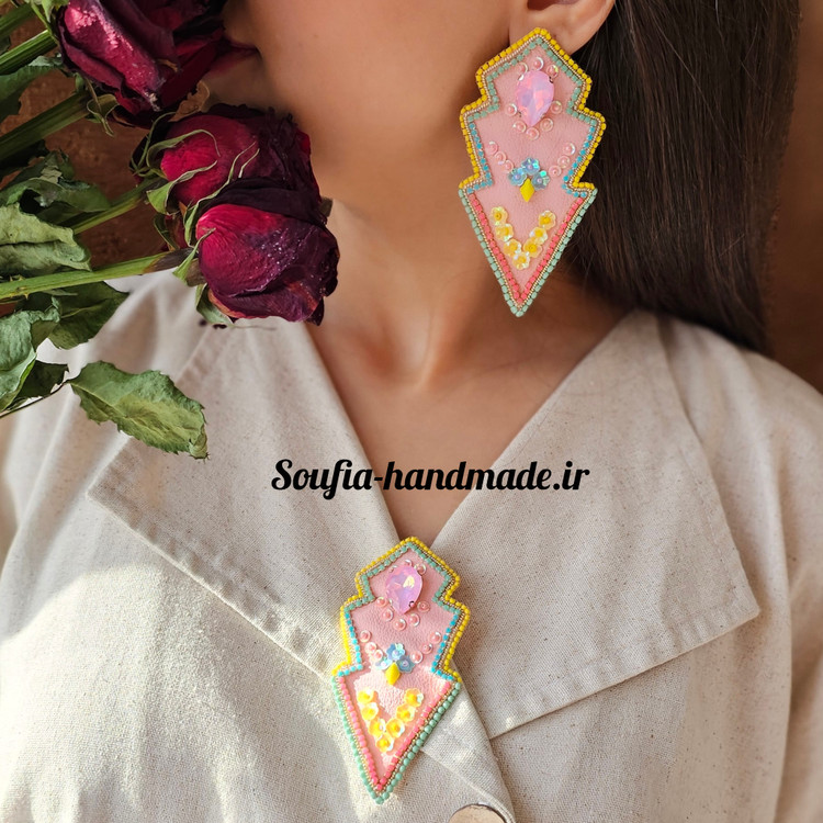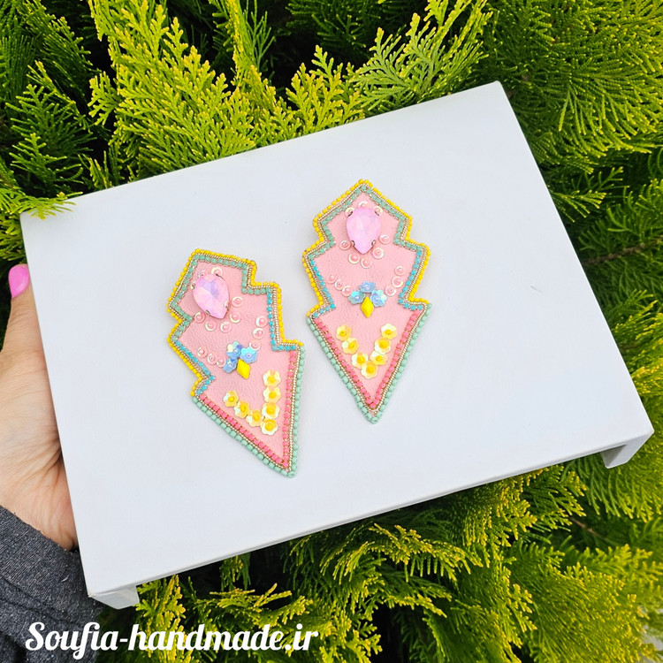 طراحی این گوشواره به گونه ای هست که متریال آن روی چرم کار شده