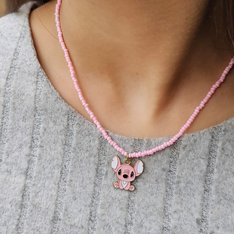 گردنبند با منجوق و پلاک استیل استیچ ساخته شده