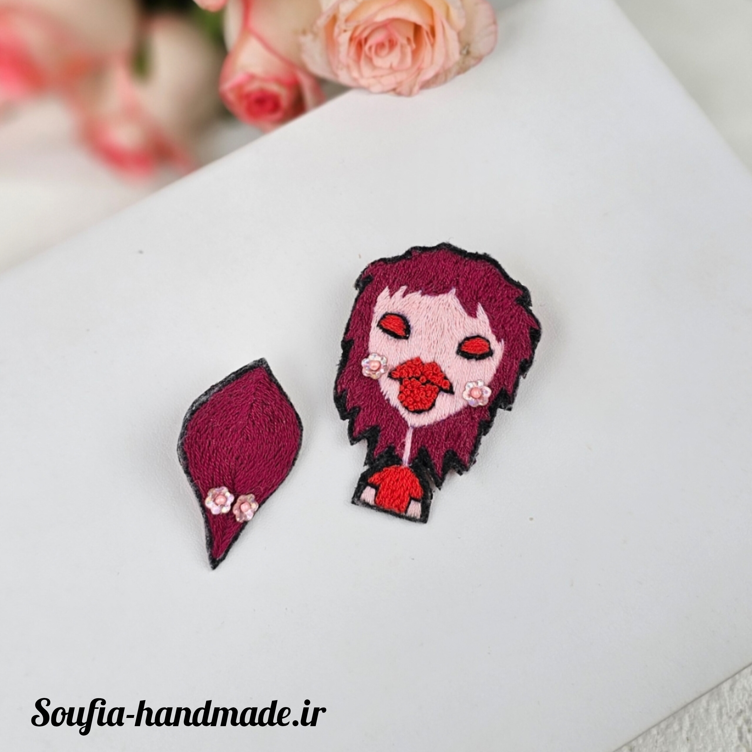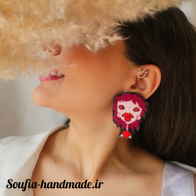 گوشواره گلدوزی شده دخترک مو قرمز