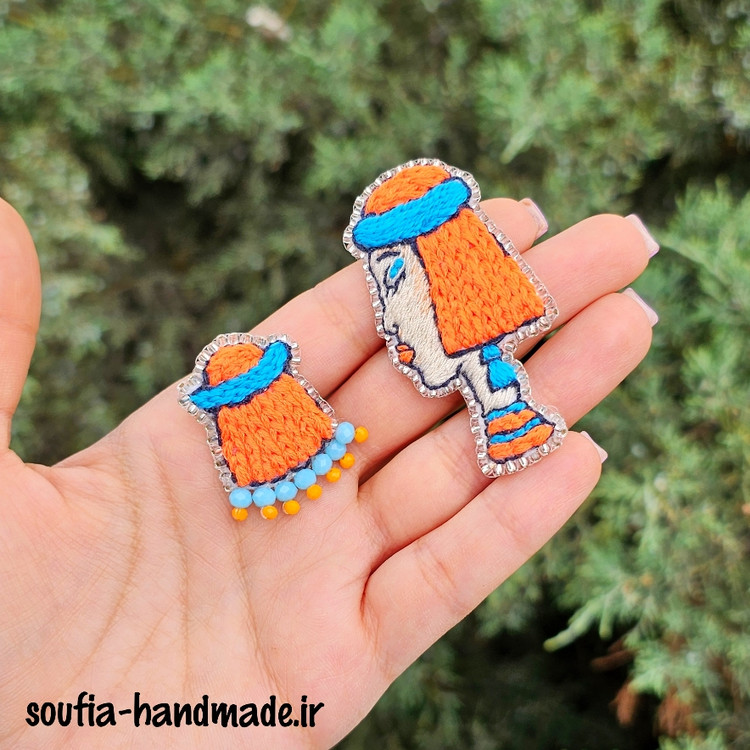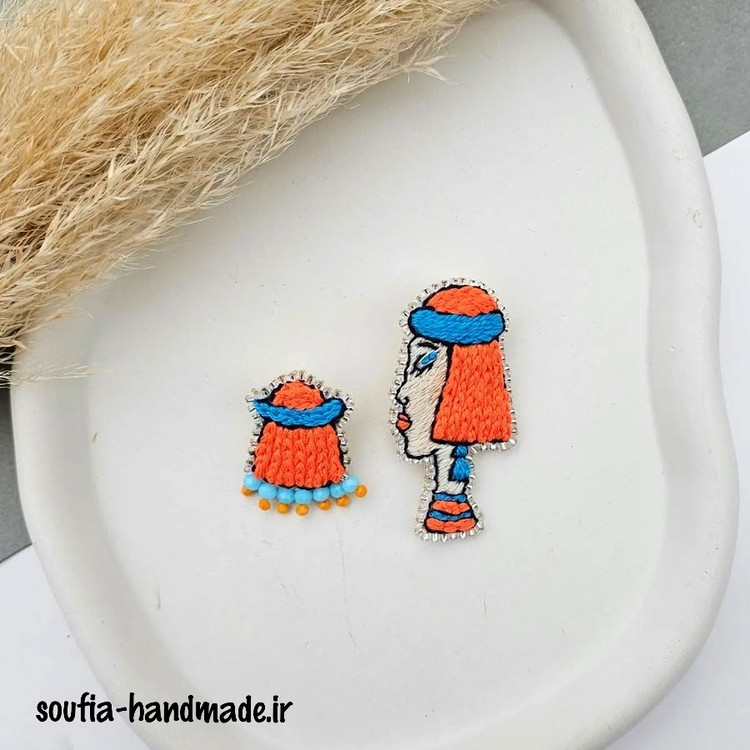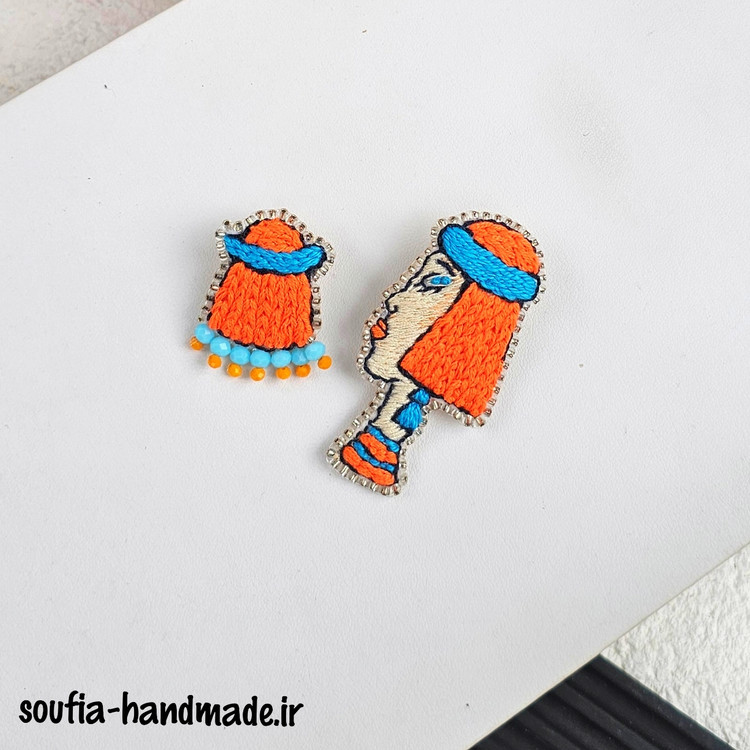 گوشواره گلدوزی شده دخترک مو نارنجی