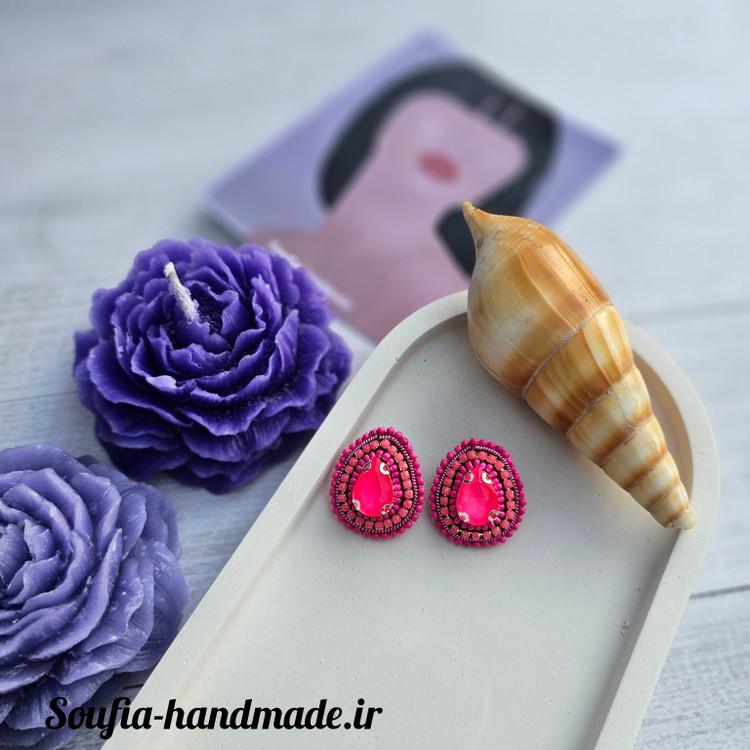 گوشواره جواهردوزی سنگ اشک سرخابی