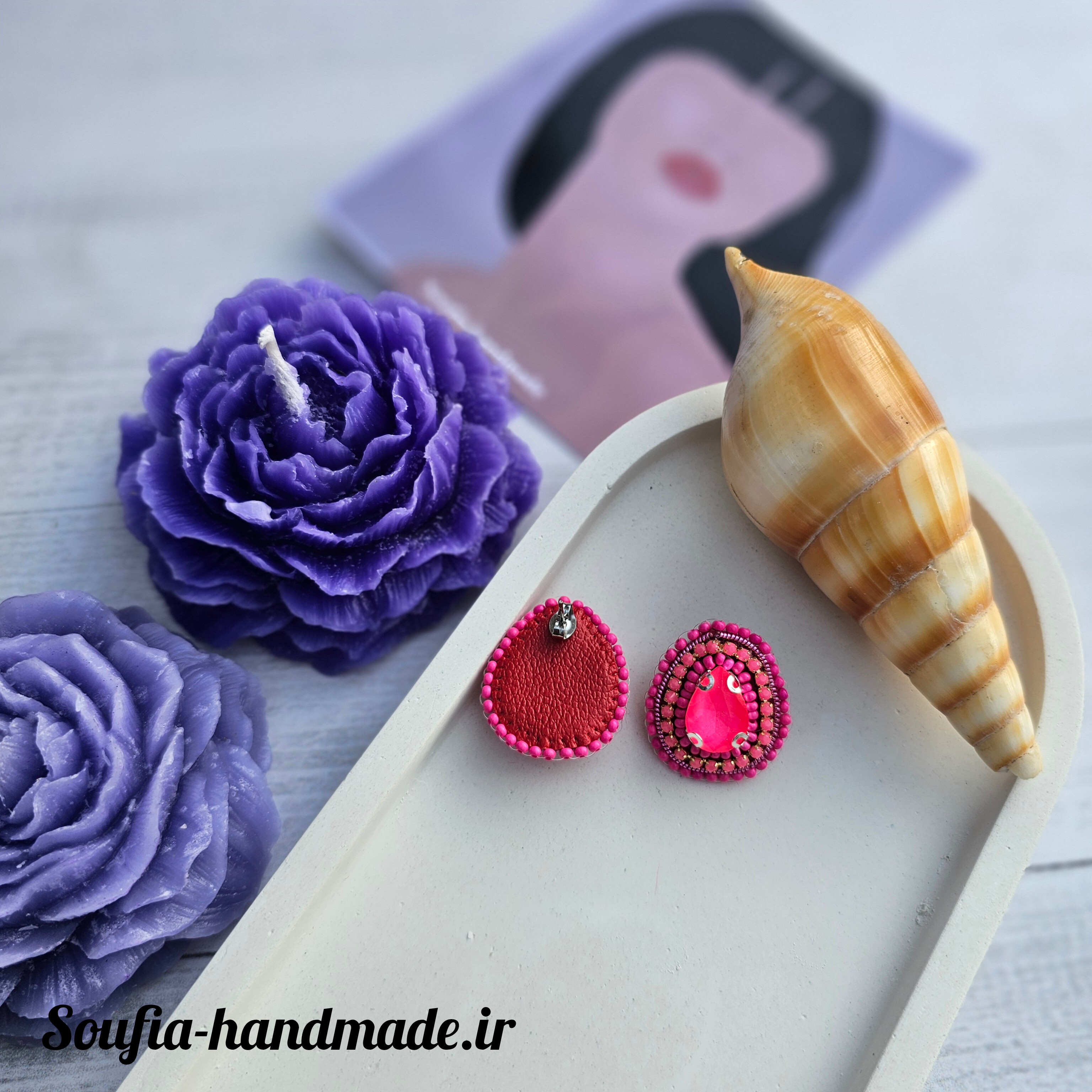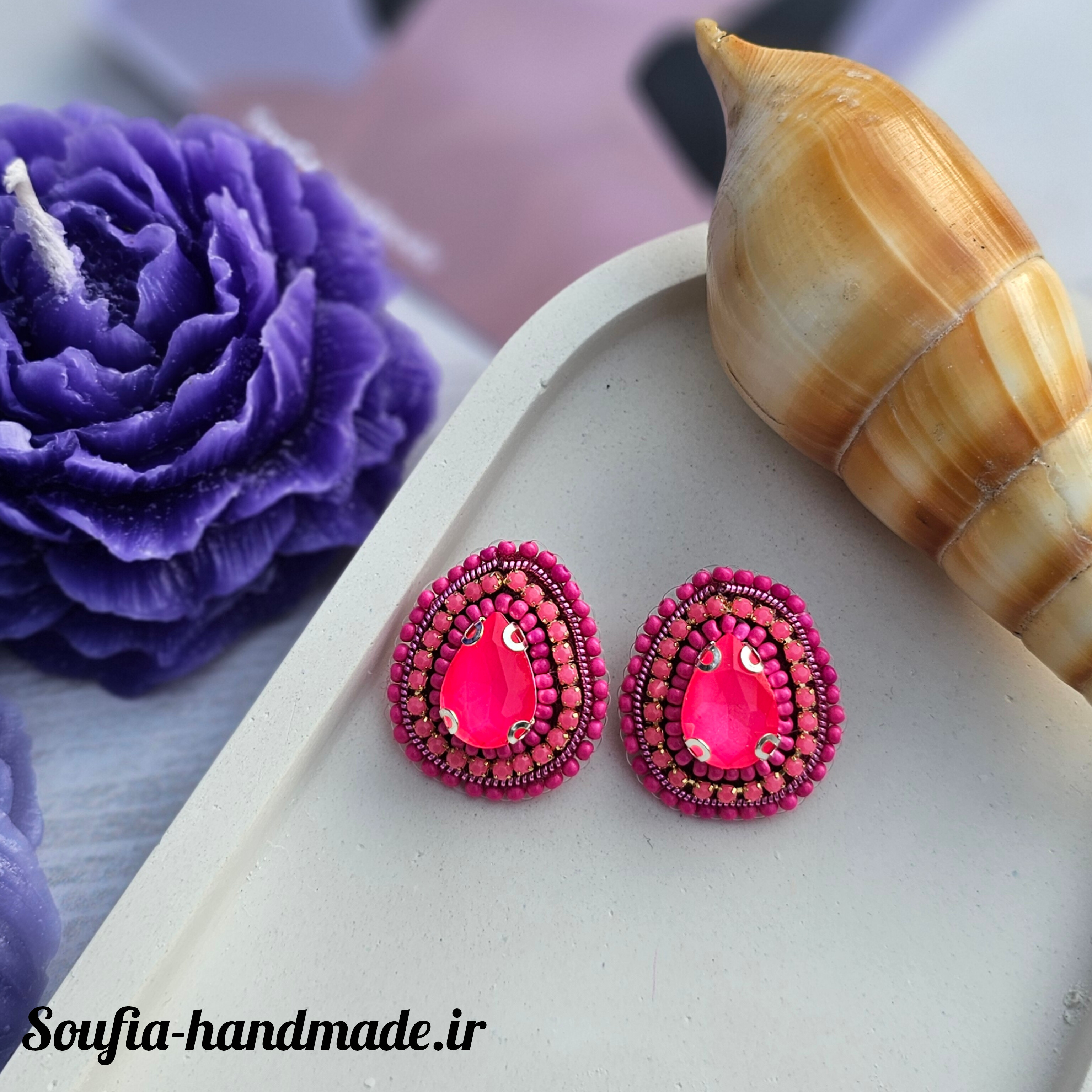 گوشواره جواهردوزی سنگ اشک سرخابی