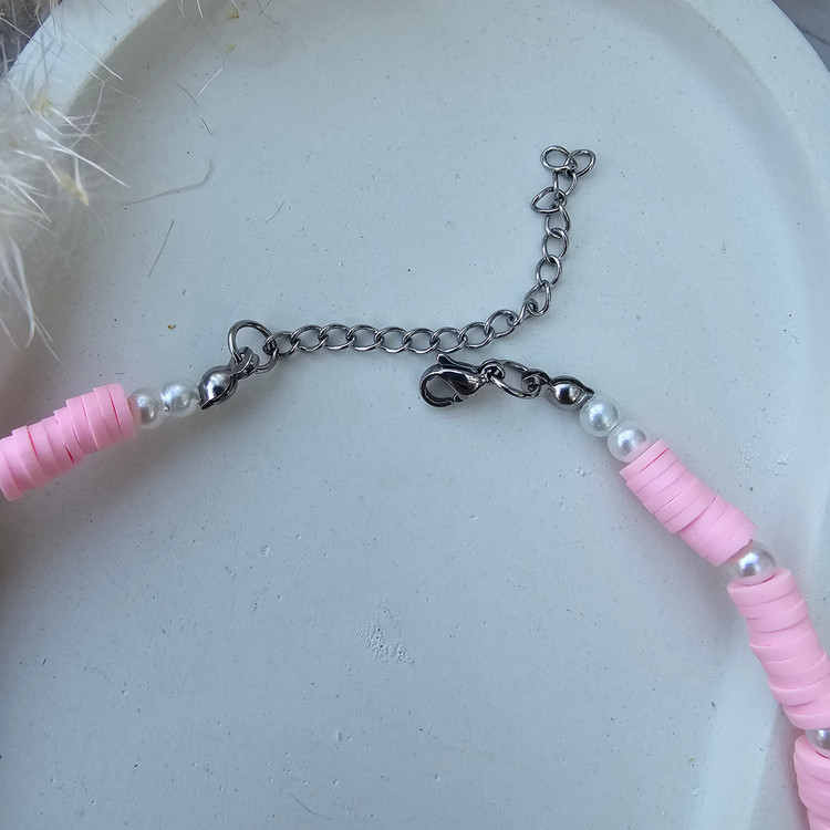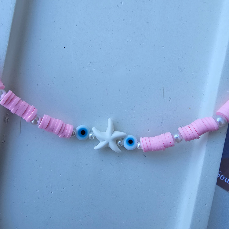 گردنبند فیمو صورتی با مهره ستاره دریای و مهره چشم نظر