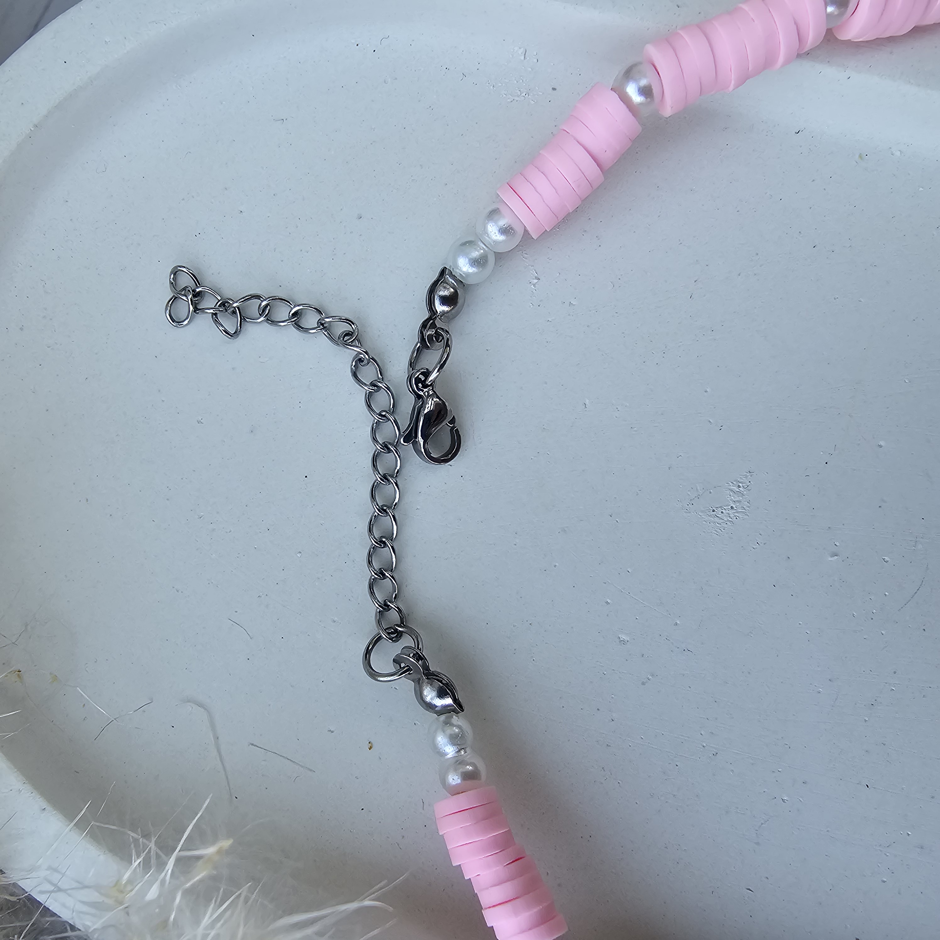 fimo necklace with eyes pink