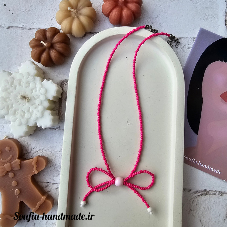 گردنبند منجوق پاپیونی سرخابی رنگ