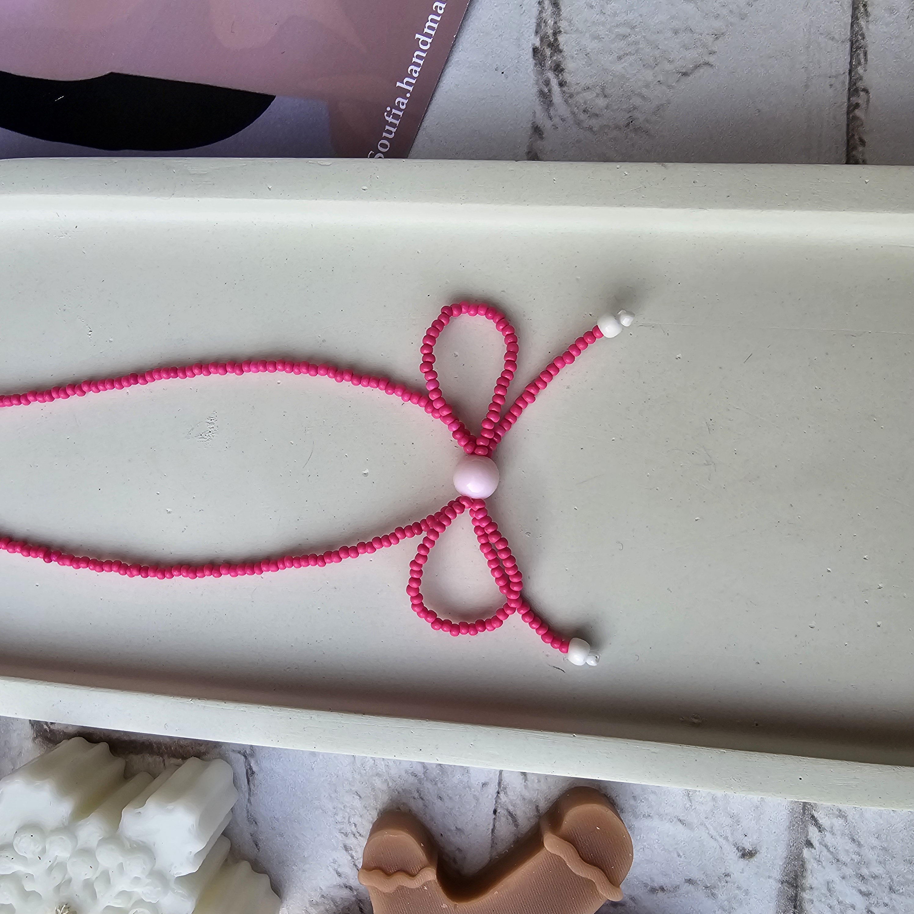 گردنبند منجوق پاپیونی سرخابی رنگ